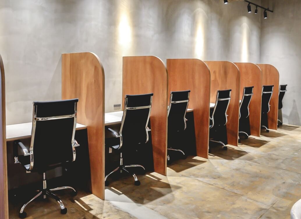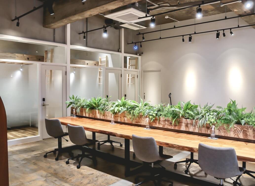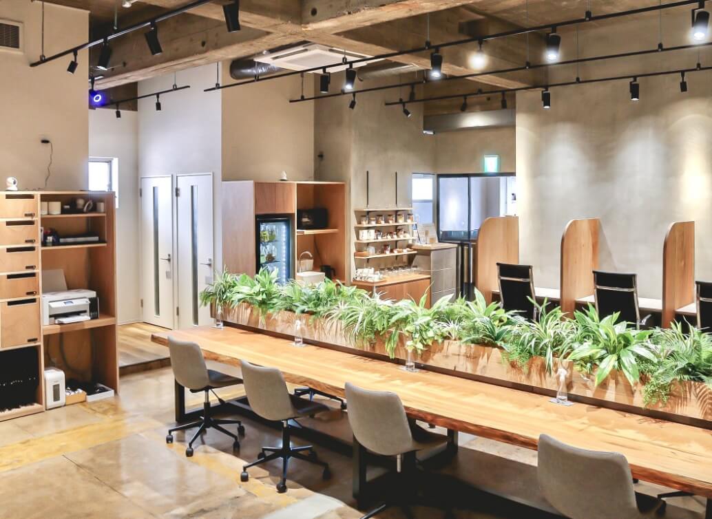 多様なニーズに対応できるよう、集中ブース席、L字型デスク、個室、ロフト付きシェアオフィス等、多彩な空間をご用意。広々としたデスクと快適な椅子で理想的な作業環境を提供します。